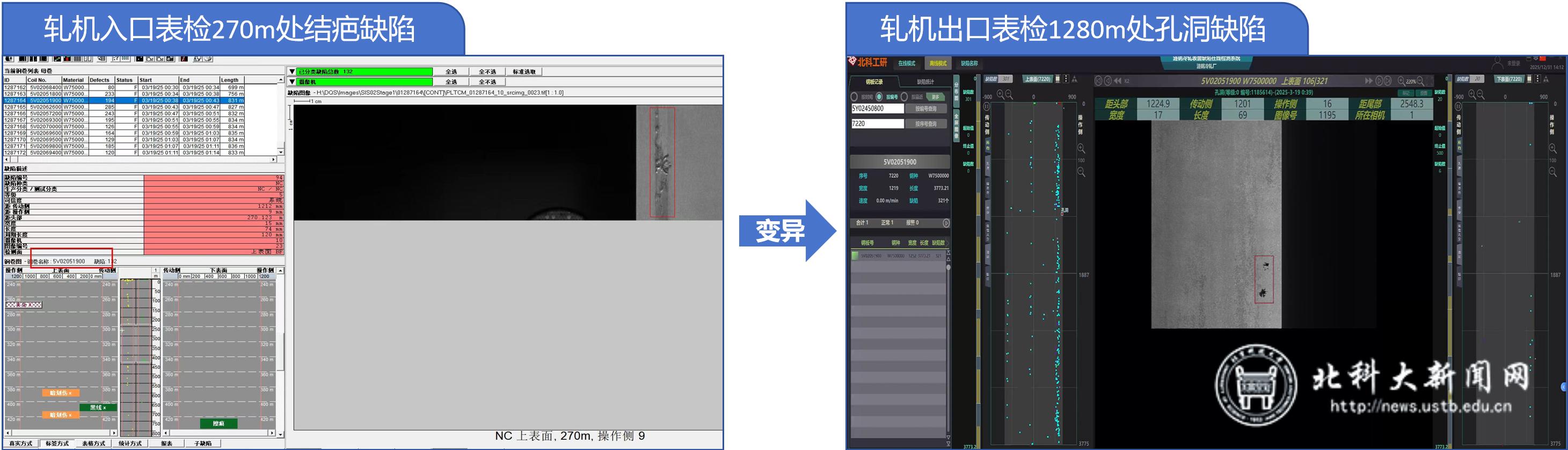 在轧机出口没有实现在线检测的时候,很多缺陷都被放出去到下一道工序或者到客户手里了,酸连轧机出口配置上北科工研的表检仪以后,“缺陷变异”、“缺陷消失”都会形成完整轧机前后的的数据追溯,做好轧机区域的质量守门员。