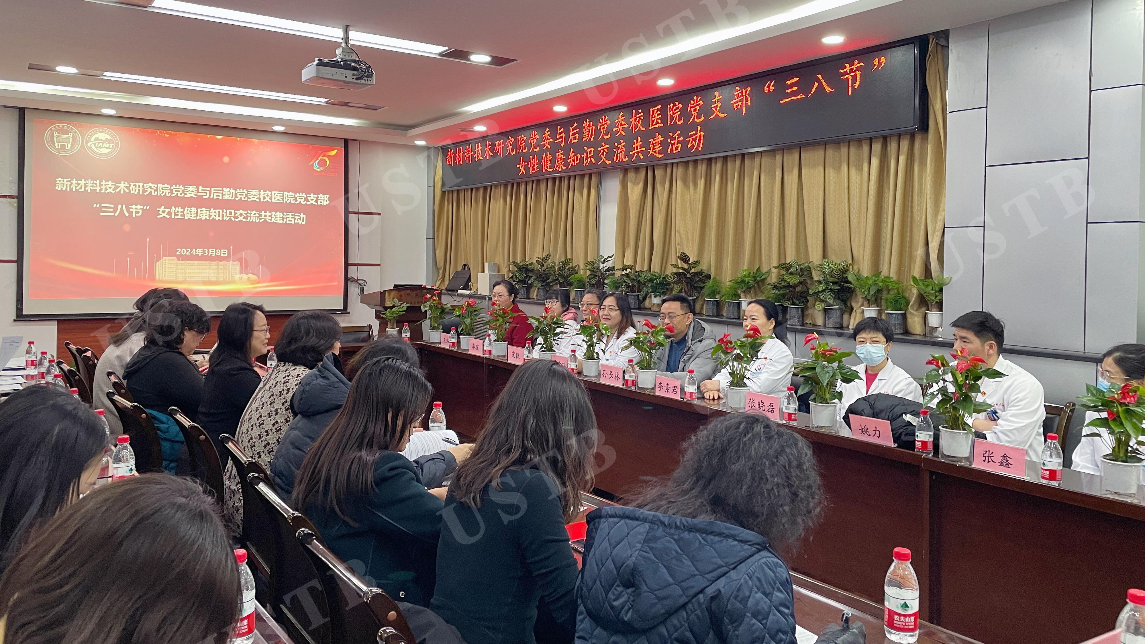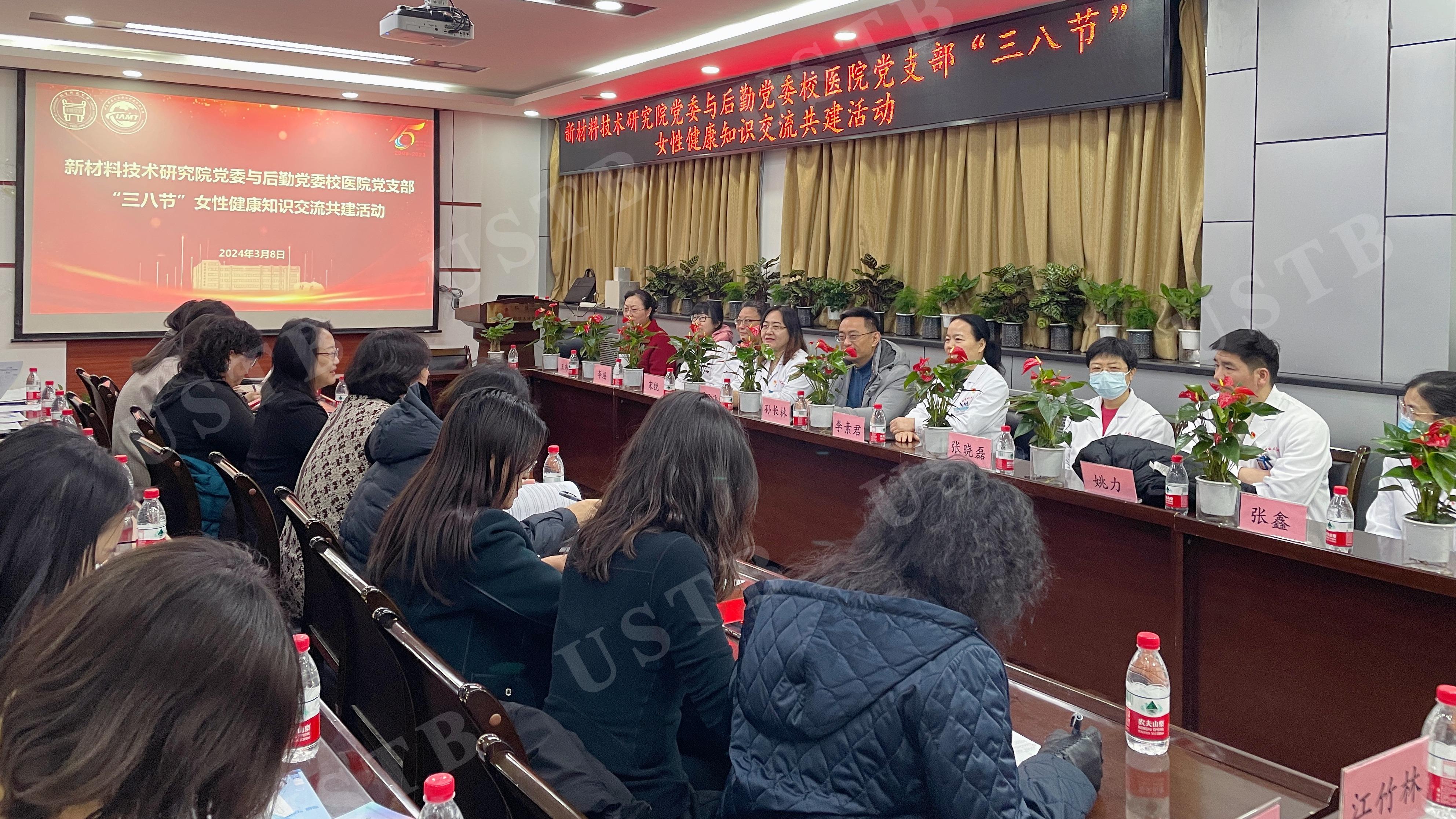 迟日江山丽、春风花草香。为庆祝第114个“三八”国际妇女节,新材料技术研究院党委和后勤党委在腐蚀楼404会议室举办“三八节”女性健康知识交流共建活动,向女同胞送上节日祝福。