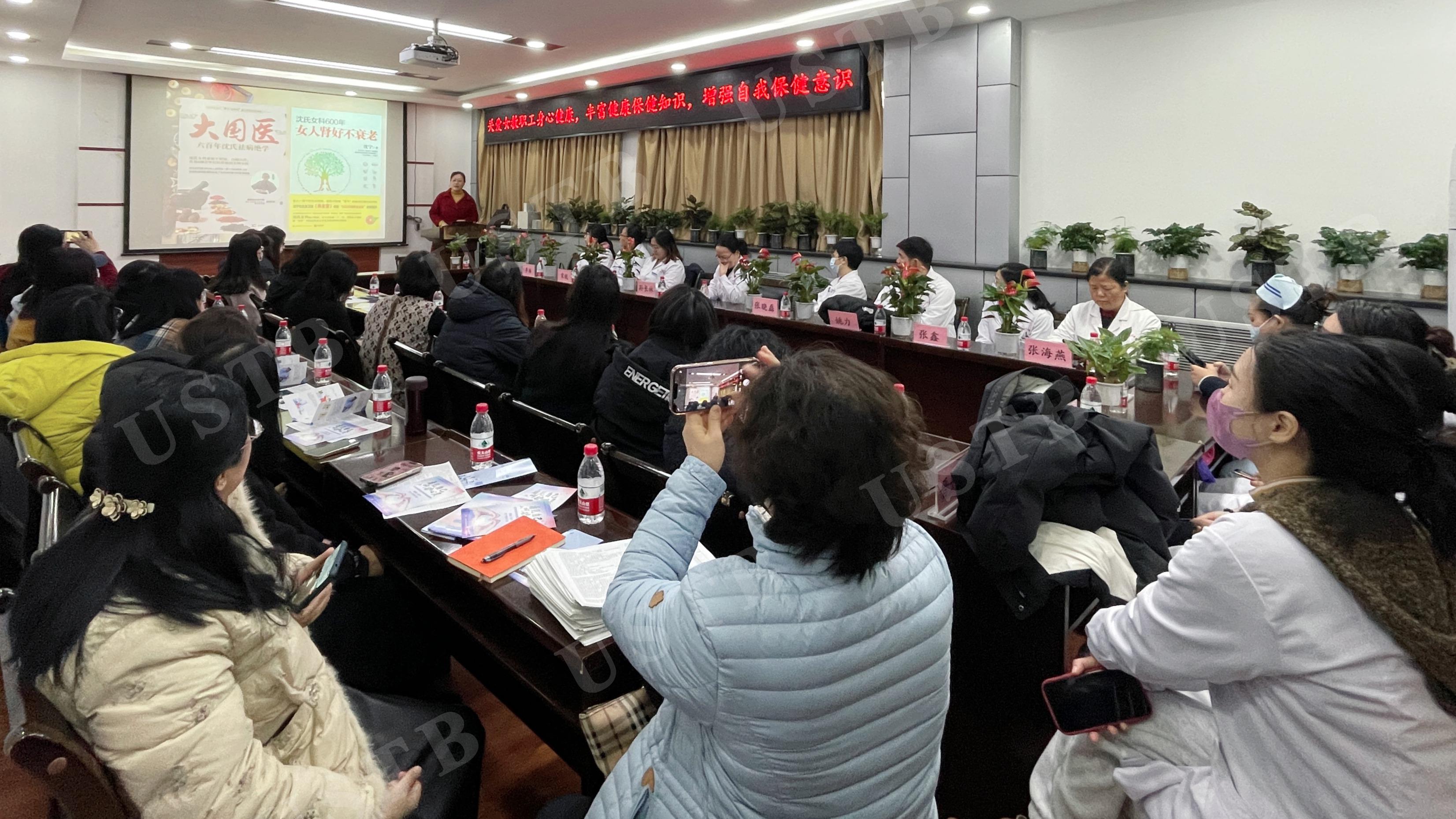 随后,中医科王玮大夫为大家讲解了女性中医养生知识。在中医理论的指导下从女性生理特点、病理特点,总结出神养、睡养、动养、静养、食养等方面的养身之道。到场医生们不仅为老师们一对一进行了中医体质辨识,指导大家如何做好日常保健,而且还针对体检中遇到的问题,为新材院女职工们进行答疑解惑,为大家送上一份节日礼物。