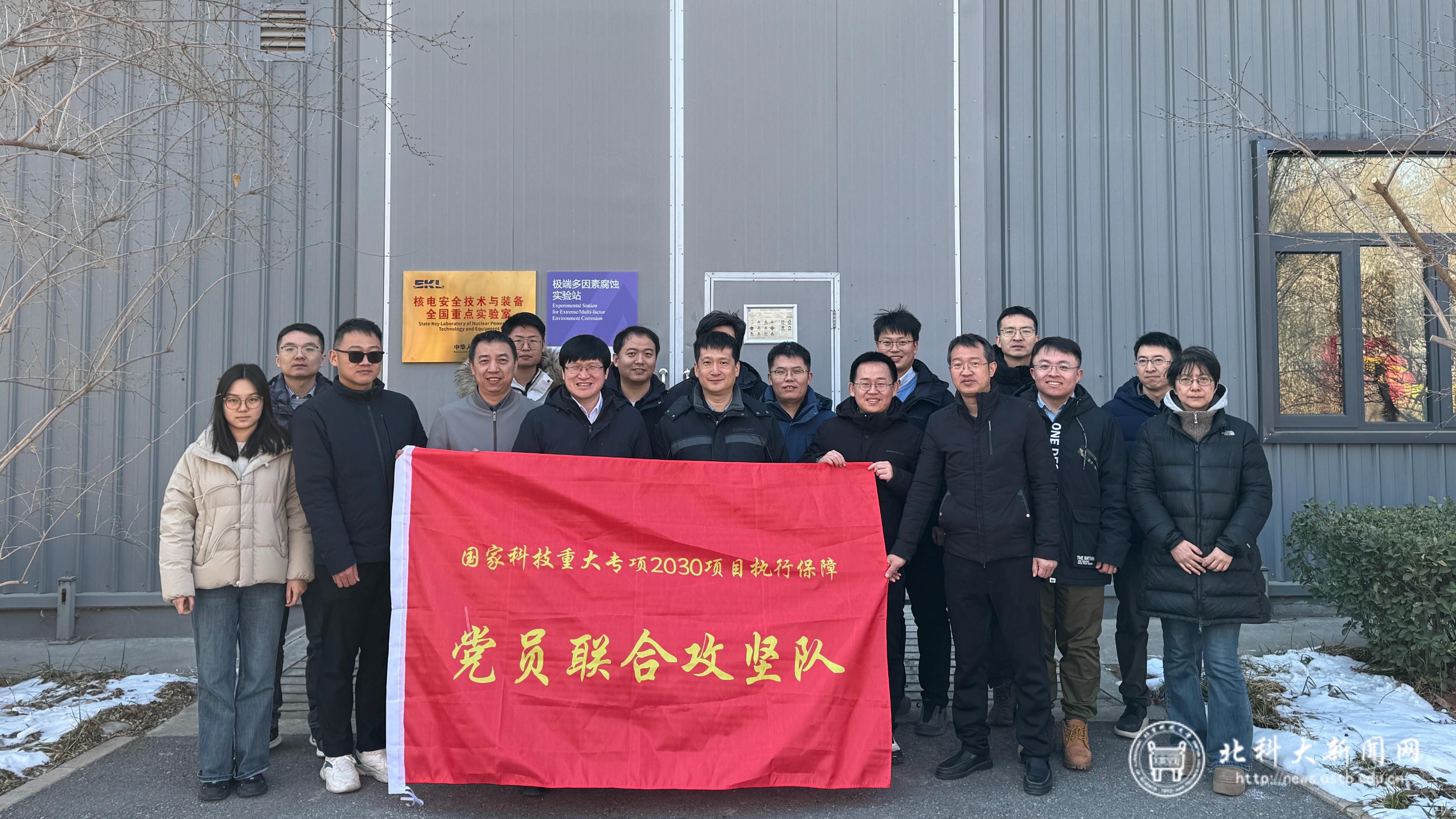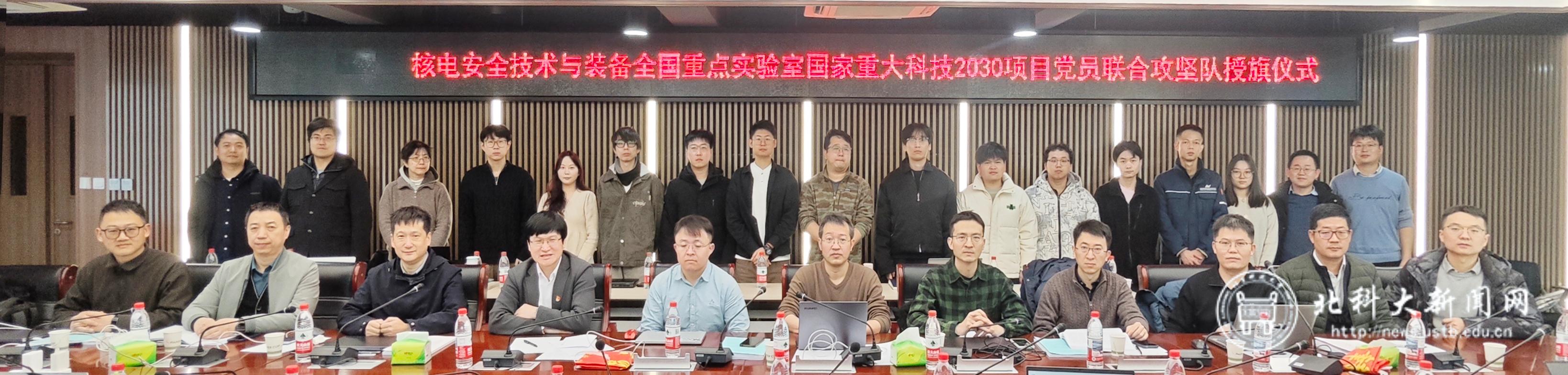 北科大新闻网1月26日电(通讯员 梁莹)1月23日,由我校牵头承担的2030国家科技重大专项项目“2025ZD0619401”进度推进会暨核电安全技术与装备全国重点实验室党员联合攻坚队授旗仪式在国家材料服役安全科学中心(以下简称“国家科学中心”)学术交流厅举行。作为该项目的牵头单位以及核电安全技术与装备全国重点实验室依托单位之一,我校充分发挥平台统筹与资源整合优势,高效保障项目顺利实施。项目(课题)负责人、核心研发团队、党员联合攻坚队成员及特邀专家齐聚一堂,以党建凝聚合力、以科研践行使命,为该2030项目关键技术攻关注入强劲红色动能。活动由项目负责人、核电安全技术与装备全国重点实验室副主任、国家科学中心主任庞晓露主持。