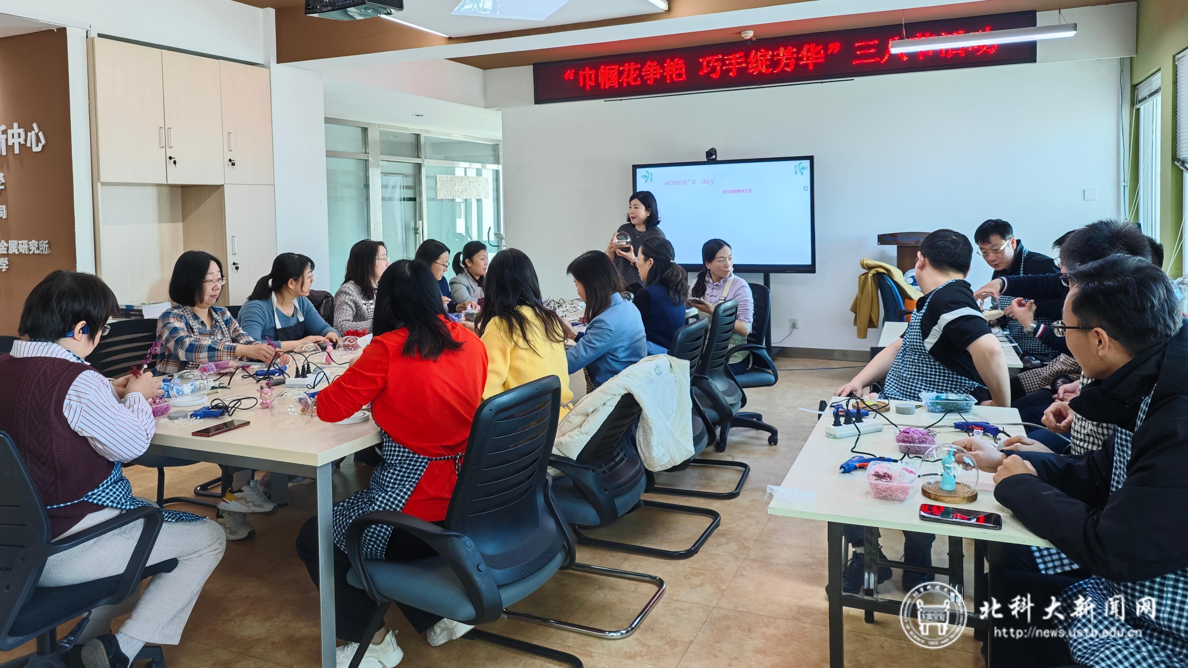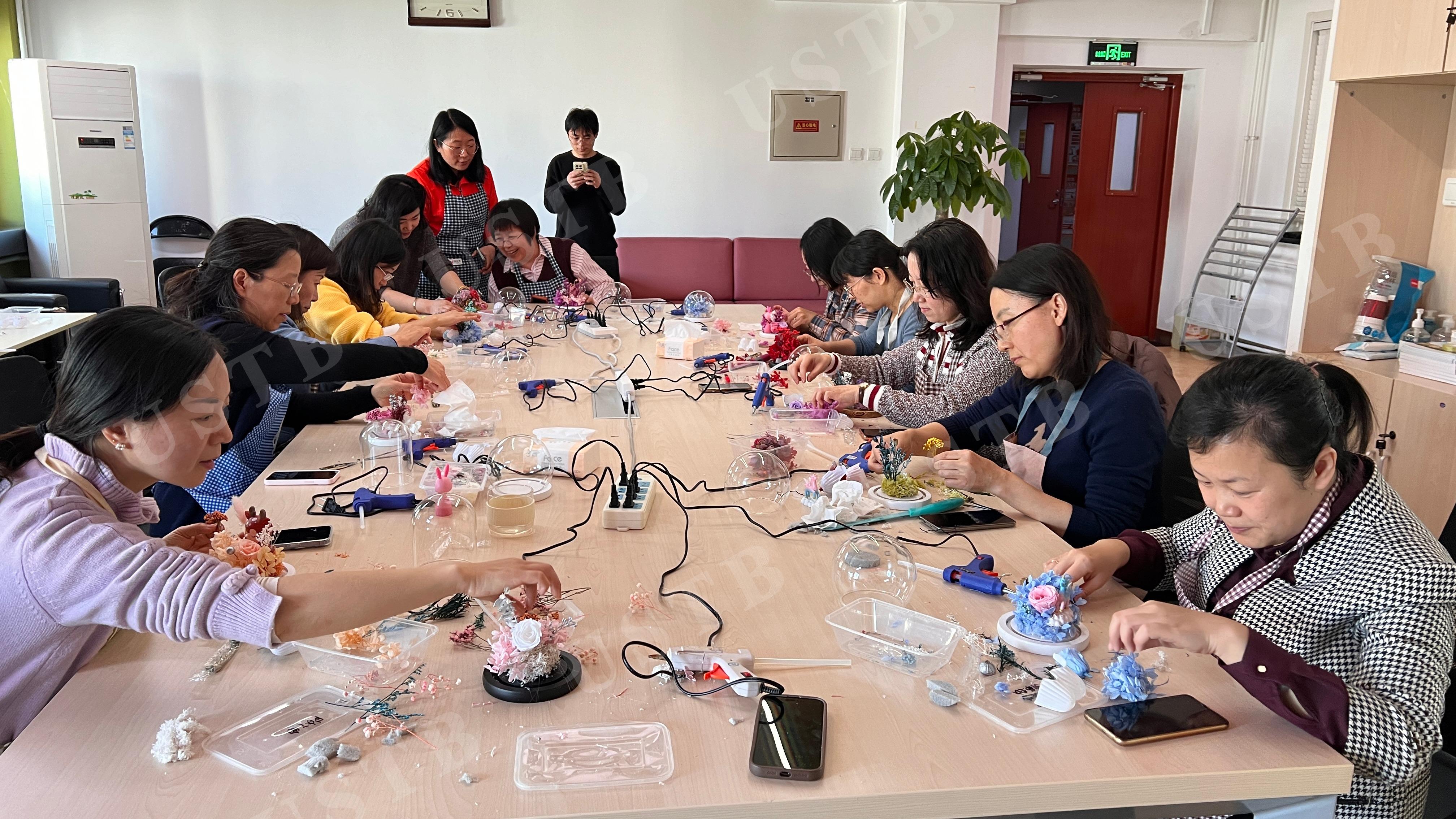 春和景明,万物复苏。在这生机勃勃的美丽三月,为庆祝“三八”国际劳动妇女节,中心工会小组精心组织了永生花花艺DIY活动,为全中心的女教工们送去节日的问候和祝福。