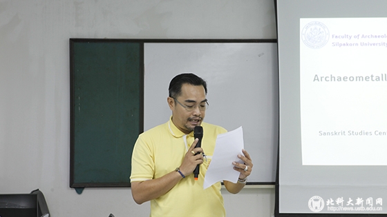 泰国艺术大学考古学院助理教授Pira Venunan介绍了本次暑期学校日程和参会人员。日程主要包括为期三天的室内讲座与三天的室外实验考古两个方面。室内讲座包括冶金考古基础知识、中国冶金考古现状、东南亚冶金考古现状、古代矿冶文化遗产展示利用等内容。实验考古主要涉及冶铁与青铜铸造两种古代技术。