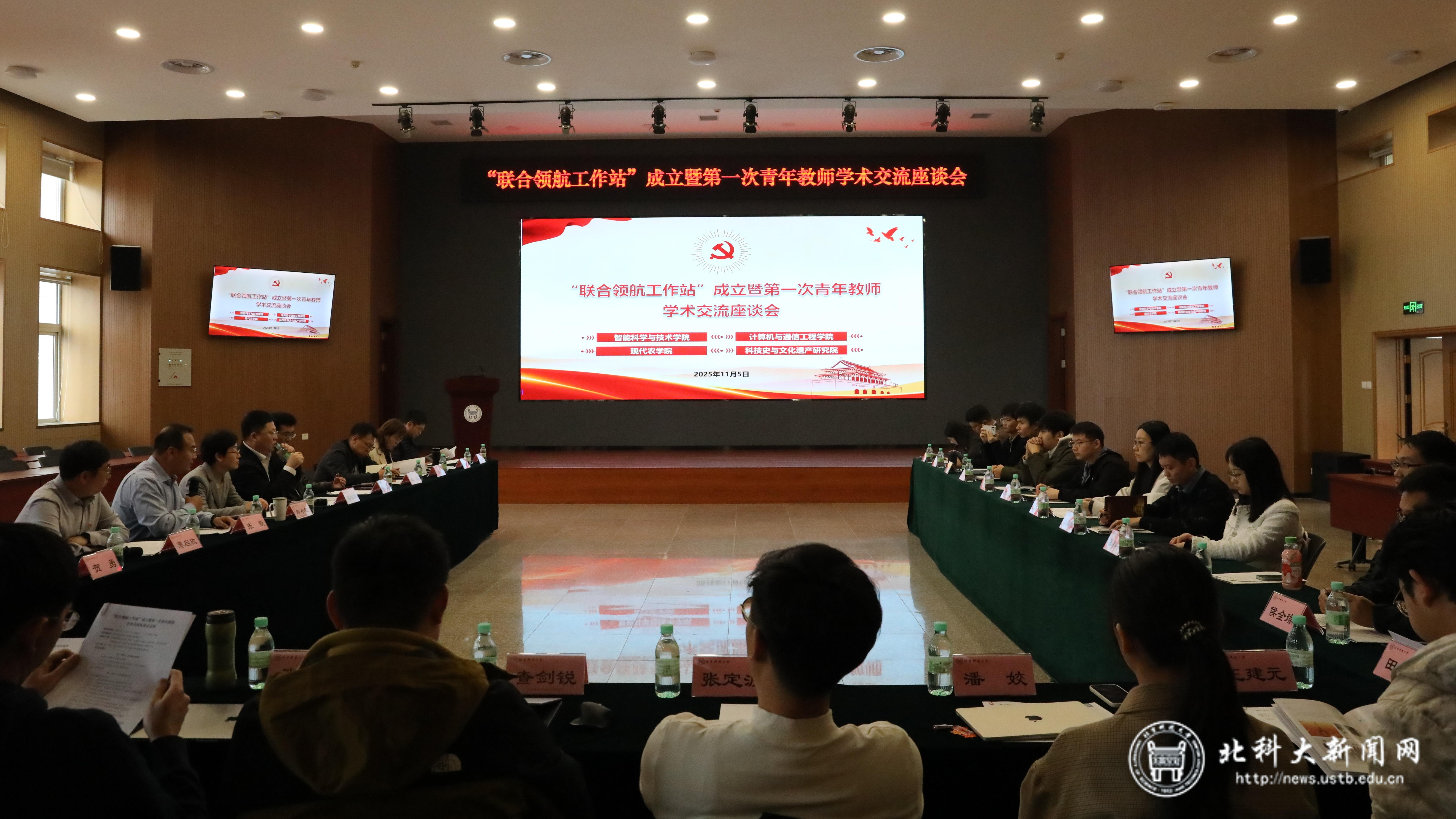 北科大新闻网11月11日电(通讯员 张琳)为推动学科交叉融合,助力青年教师成长与发展,11月5日,“联合领航工作站”成立暨第一次青年教师学术交流座谈会在逸夫科技馆二楼多功能报告厅召开。会议由智能科学与技术学院、计算机与通信工程学院、现代农学院、科技史与文化遗产研究院联合主办,学校党委常委、组织部部长盛佳伟出席会议。