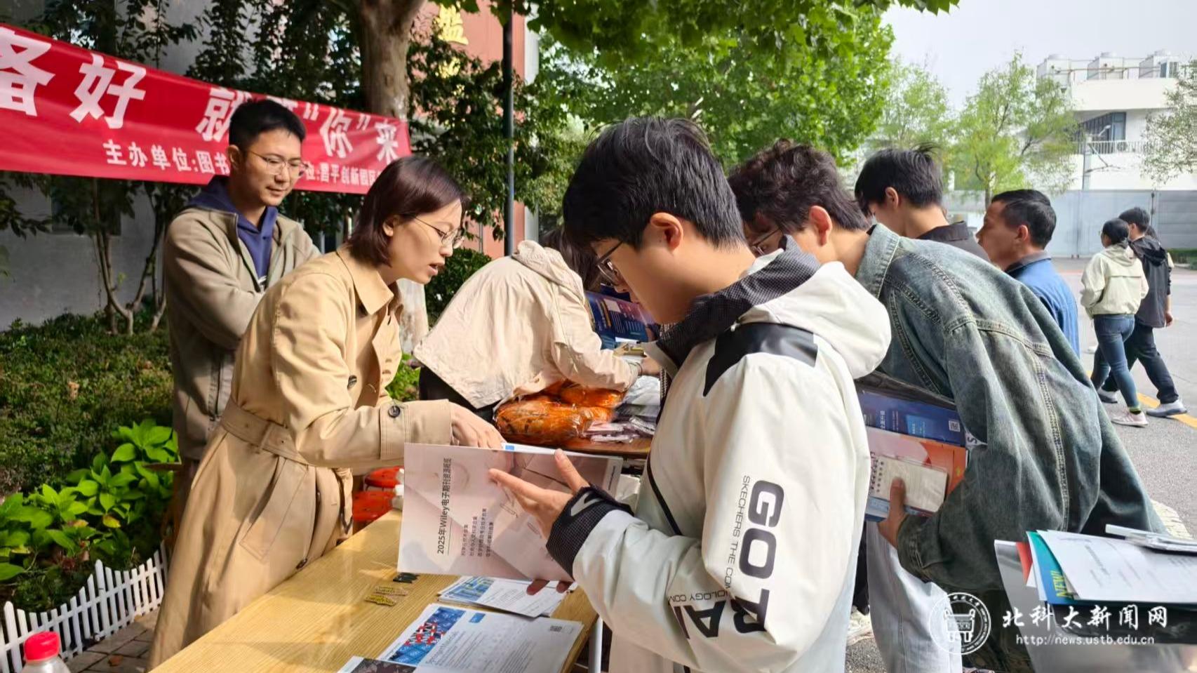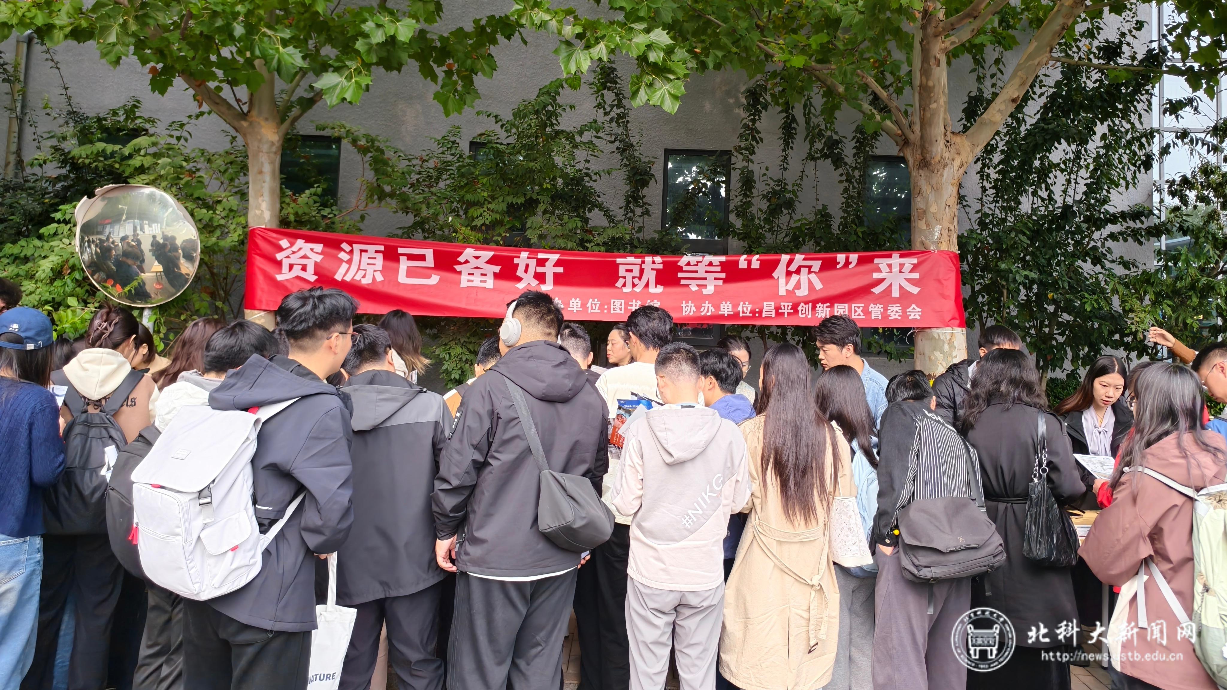 北科大新闻网10月17日电(通讯员 刘玥)10月15日,校图书馆联合昌平创新园区管委会,在园区内举办了“资源已备好,就等‘你’来”主题图书馆数字文献资源宣传活动。活动现场设置资源展示与咨询区,多家数字文献资源方负责人到场,以展台讲解、现场演示、问答互动等形式,为大家详细介绍图书馆目前已上线的各类电子资源。