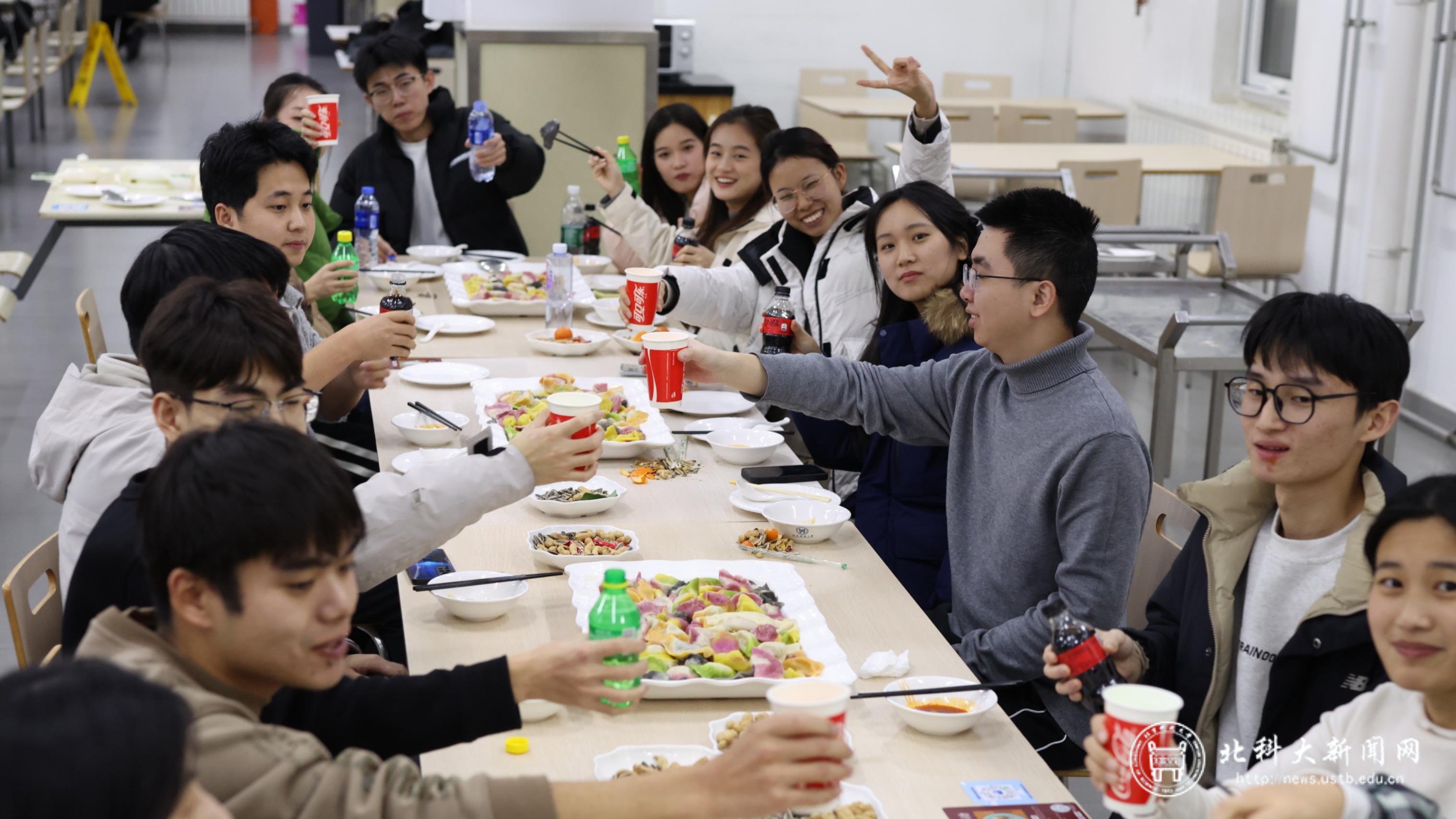 等待饺子出锅的间隙,马化云为大家准备了一份惊喜,桌上摆满了清甜的橘子、香脆的瓜子、各式糖果和饮料。同学们纷纷表示包着饺子,嗑着瓜子,吃着零食,就像在家过年一样!大家围坐畅谈家乡冬至习俗,交流校园生活趣事。这一刻,食堂不再是匆匆就餐的场所,而是一个充满烟火气与人情味的大家庭客厅。
