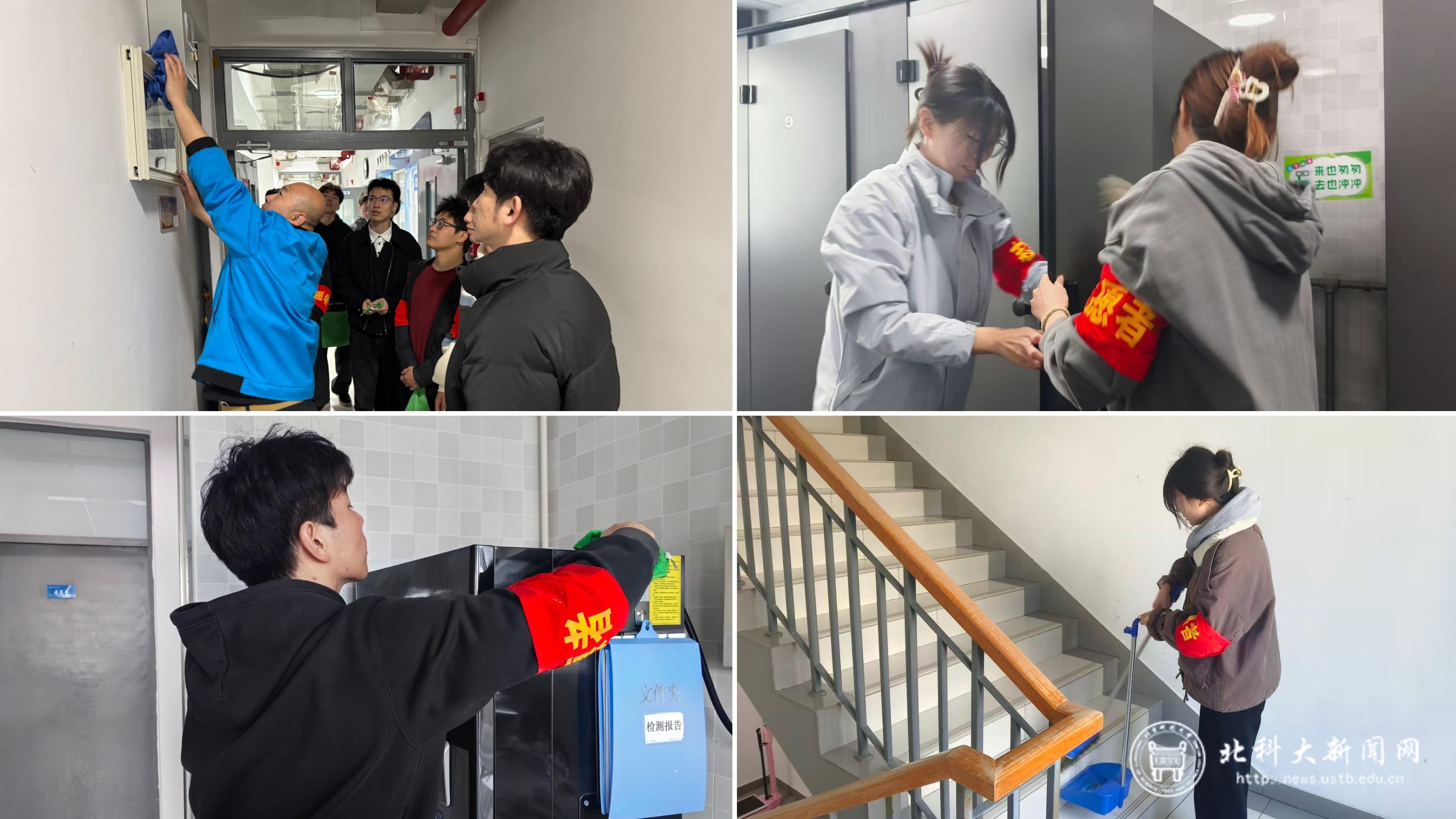 与此同时,在各公寓楼栋的公共区域,“公寓楼栋大扫除”行动同步展开。同学们分工协作,有的仔细擦拭楼梯扶手、窗台,清理墙面灰尘;有的认真清运楼道内的堆积杂物,确保消防生命通道绝对畅通。他们忙碌的身影,成为了园区春日里一道亮丽的风景线。