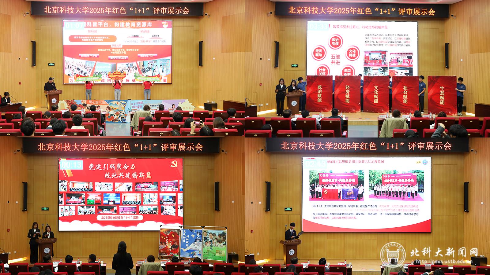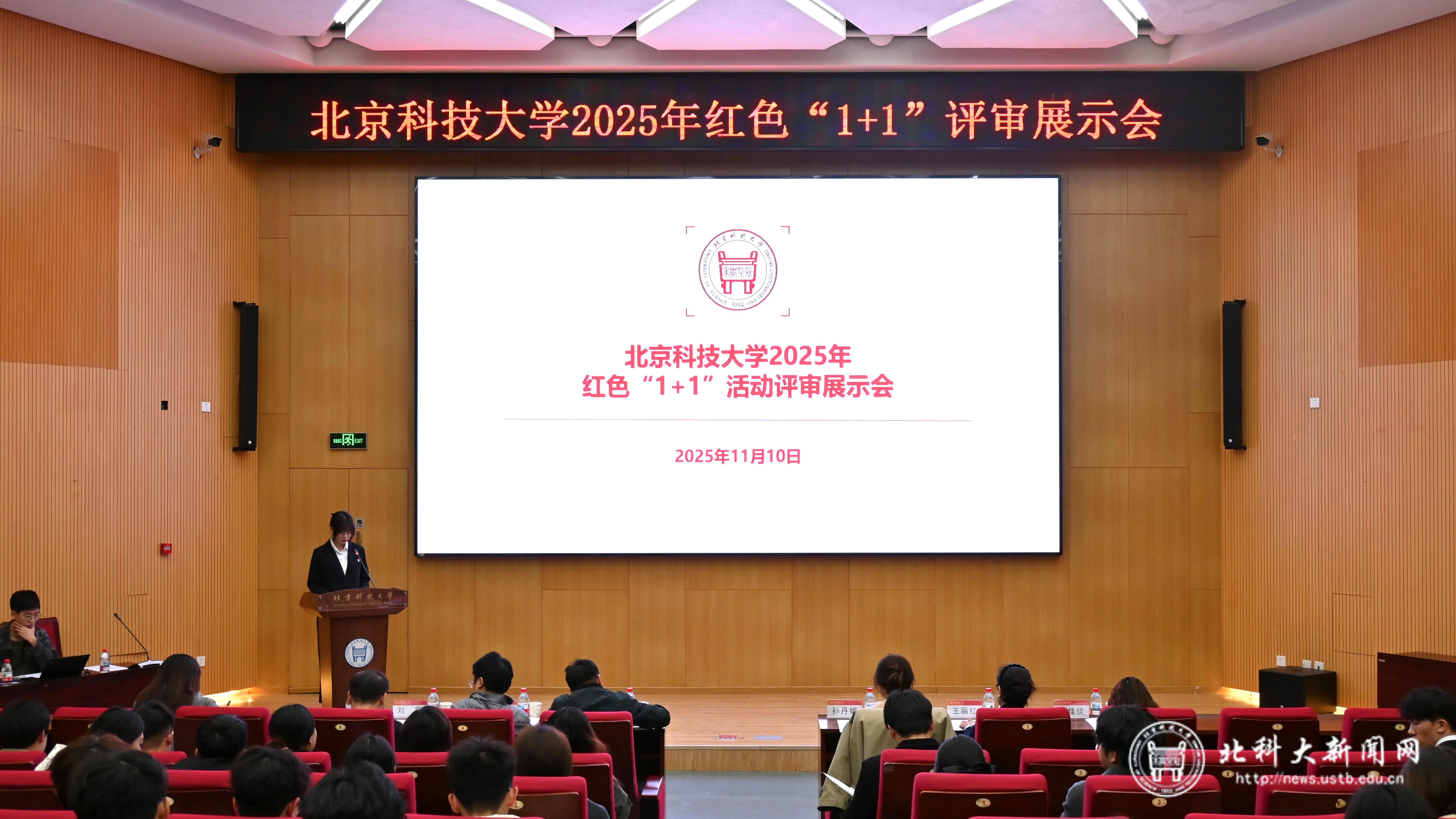 北科大新闻网11月11日电(通讯员 陈睿)为深入学习贯彻习近平新时代中国特色社会主义思想,全面贯彻党的二十大和二十届历次全会精神,学习贯彻全国教育大会精神,扎实推进“时代新人强国行”首都大学生主题实践活动,教育引导广大学生学思用贯通、知信行统一,切实增强学生党支部的创造力、凝聚力、战斗力,根据北京市教工委相关工作部署,学校于11月10日在学术报告厅举行2025年红色“1+1”活动评审展示会。