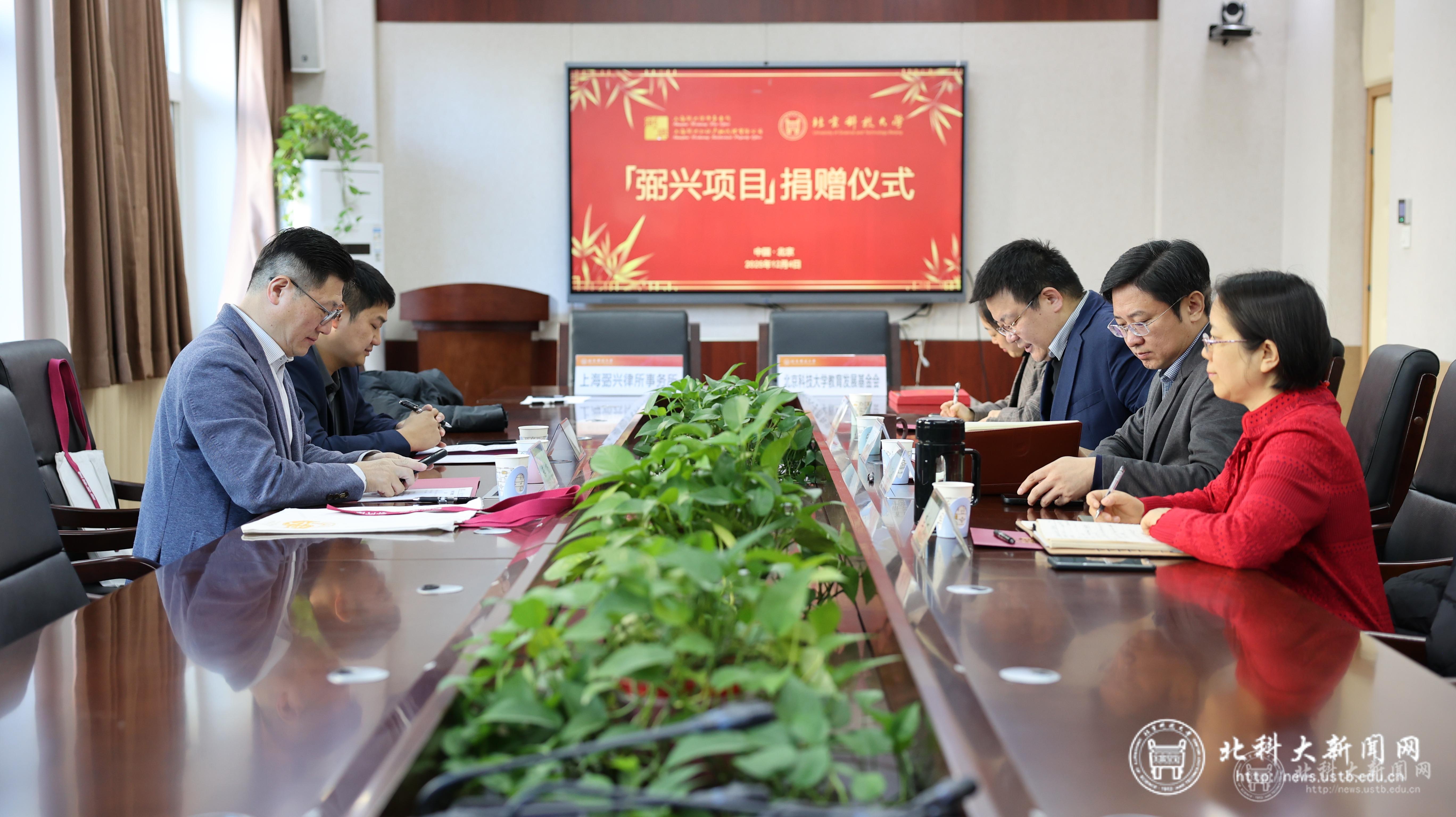 北科大新闻网12月8日电(通讯员 李奕明,作者 王伟)12月4日,“弼兴项目”捐赠仪式在文法楼210会议室举行。捐资人上海弼兴律师事务所主任薛琦,学校校友会办公室、基金会办公室副主任朱文亮,文法学院党委书记赵宝永、院长毛昊,党委副书记、副院长李虹出席捐赠仪式。仪式由毛昊主持。