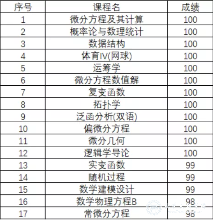 一份数学相关专业的学生成绩单引发关注:12门课100分,还有多门99分、98分!