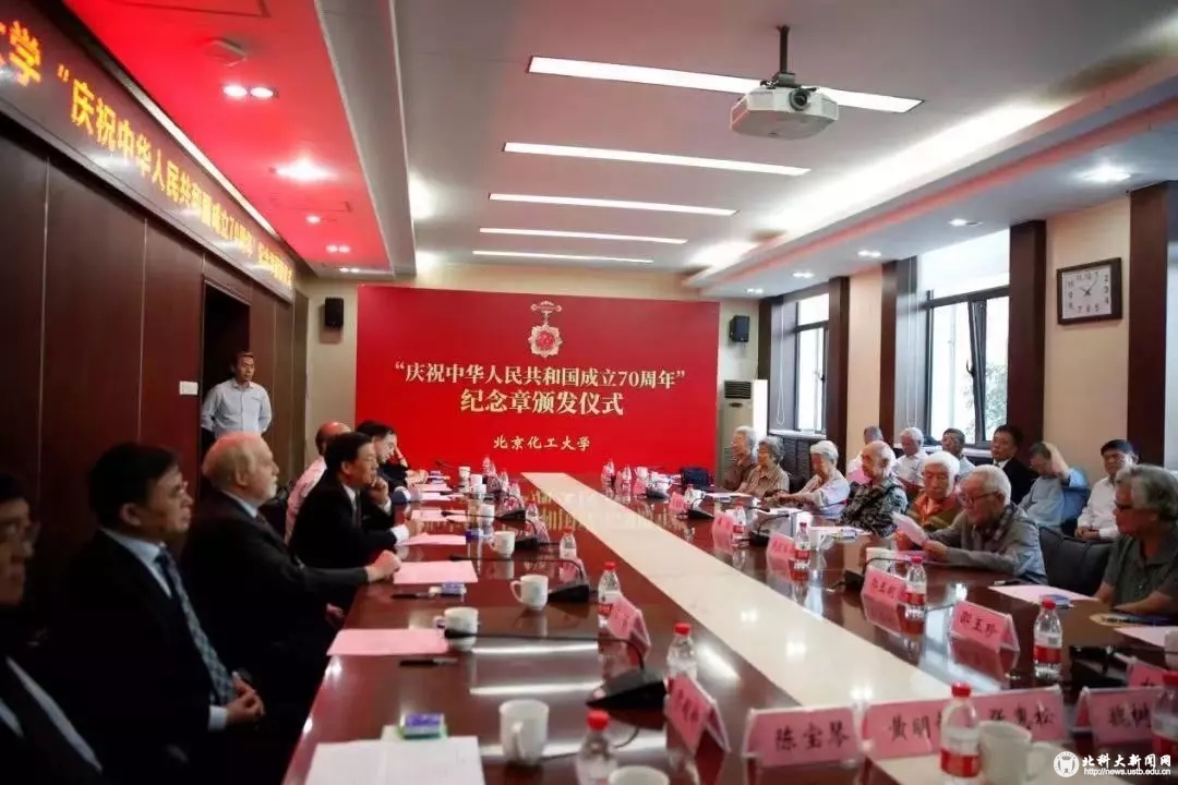 北京化工大学等校为荣获庆祝中华人民共和国成立70周年纪念章的老同志举办颁发仪式,开展先进典型学习活动。