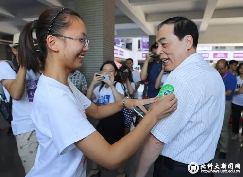 南大校长陈骏院士参加迎新工作,学生给他贴上商学院特制袖贴