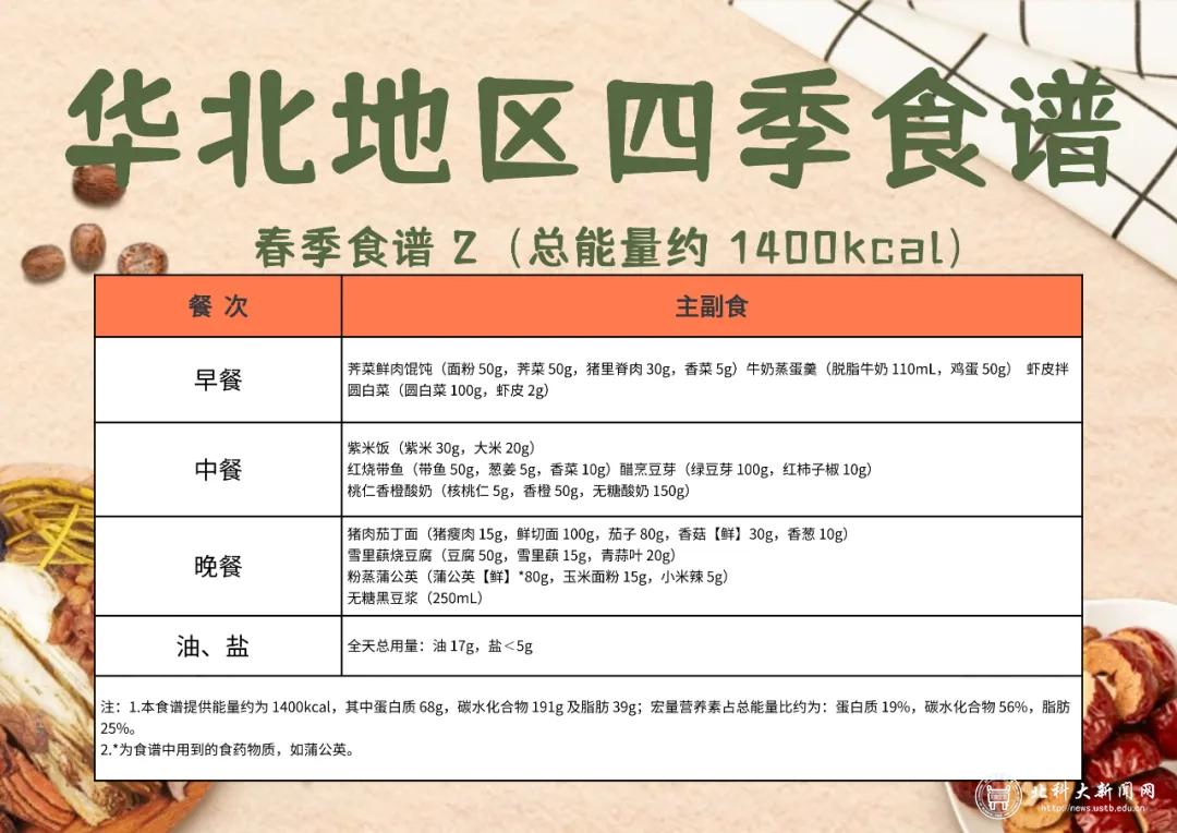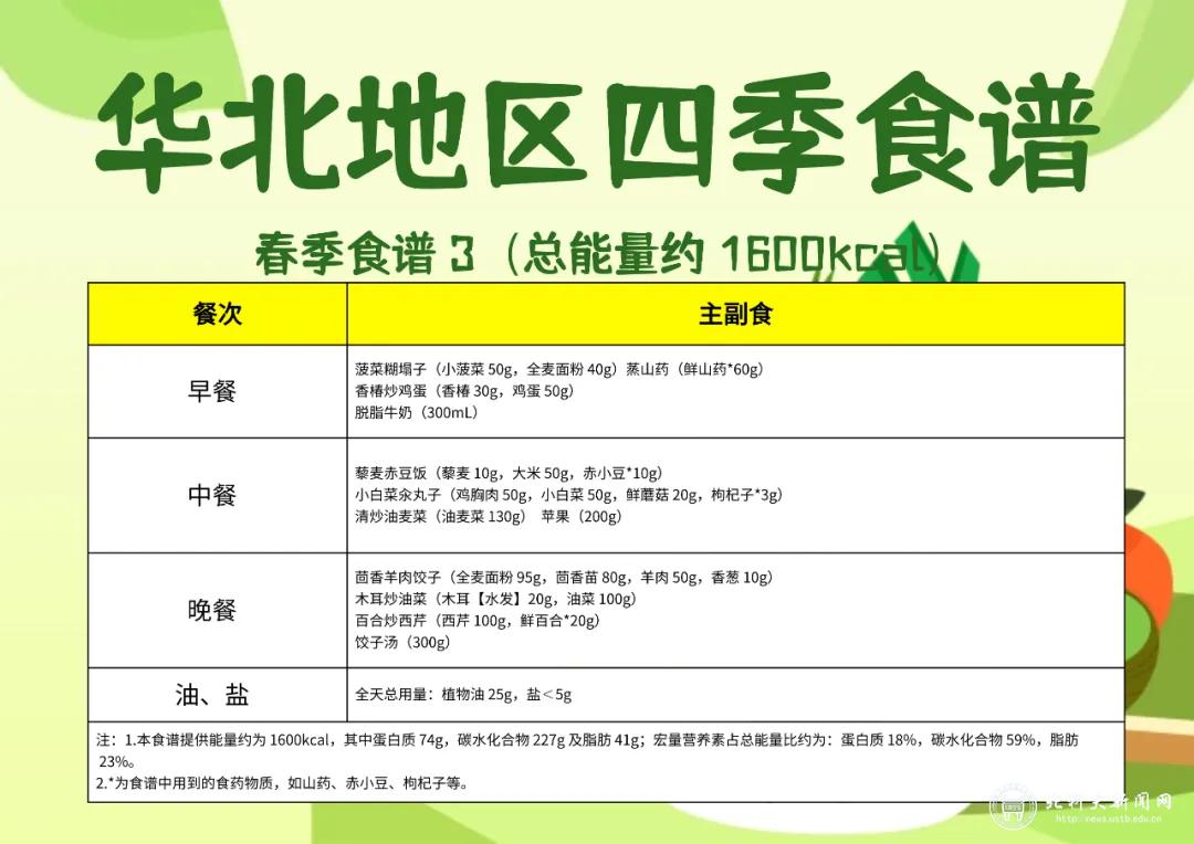 依据华北地区春季食谱