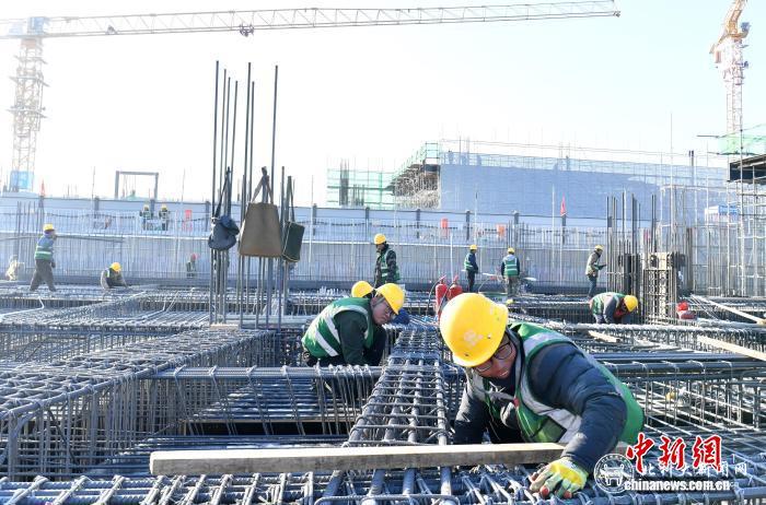 1月1日,河北雄安新区北京科技大学雄安校区第二组团项目-主教学楼及学科用房C、D建设现场,建设者正在进行施工作业。中新社记者 韩冰 摄