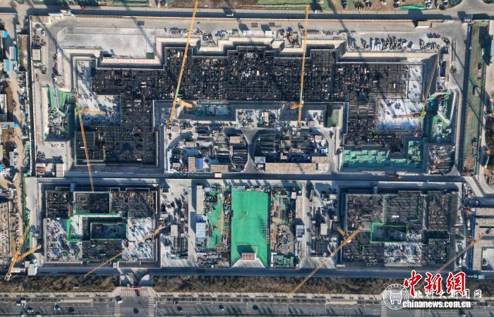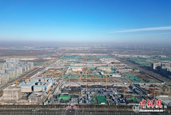 1月1日,航拍河北雄安新区北京科技大学雄安校区第二组团项目-主教学楼及学科用房C、D建设现场。(无人机照片)中新社记者 韩冰 摄