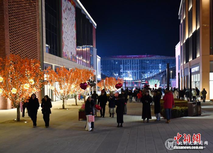 2025年12月31日晚,河北雄安新区举办迎元旦系列活动,雄安市民在雄安奥特莱斯迎接新年。中新社记者 韩冰 摄