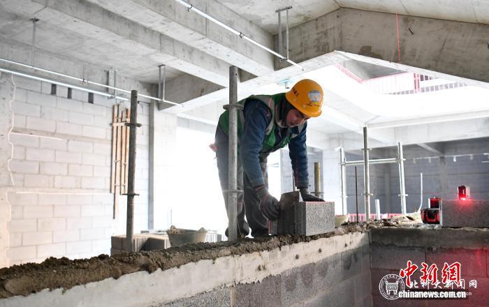 1月1日,河北雄安新区中冶建工雄安新区起步区第五组团大学城配套一期项目四标段建设现场,建设者正在进行施工作业。中新社记者 韩冰 摄