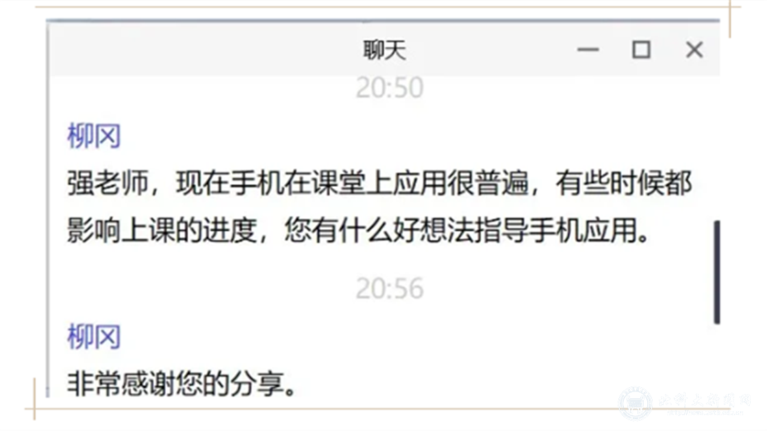 讲座结束后,与会教师积极进行提问。强文江围绕平衡教学任务和其余工作、取舍课本内容和实例、疏导学生使用手机、提高批阅作业效率等问题与现场教师进行了热烈交流,教师们均表示受益匪浅。本次线上沙龙在一片感谢声中圆满结束。