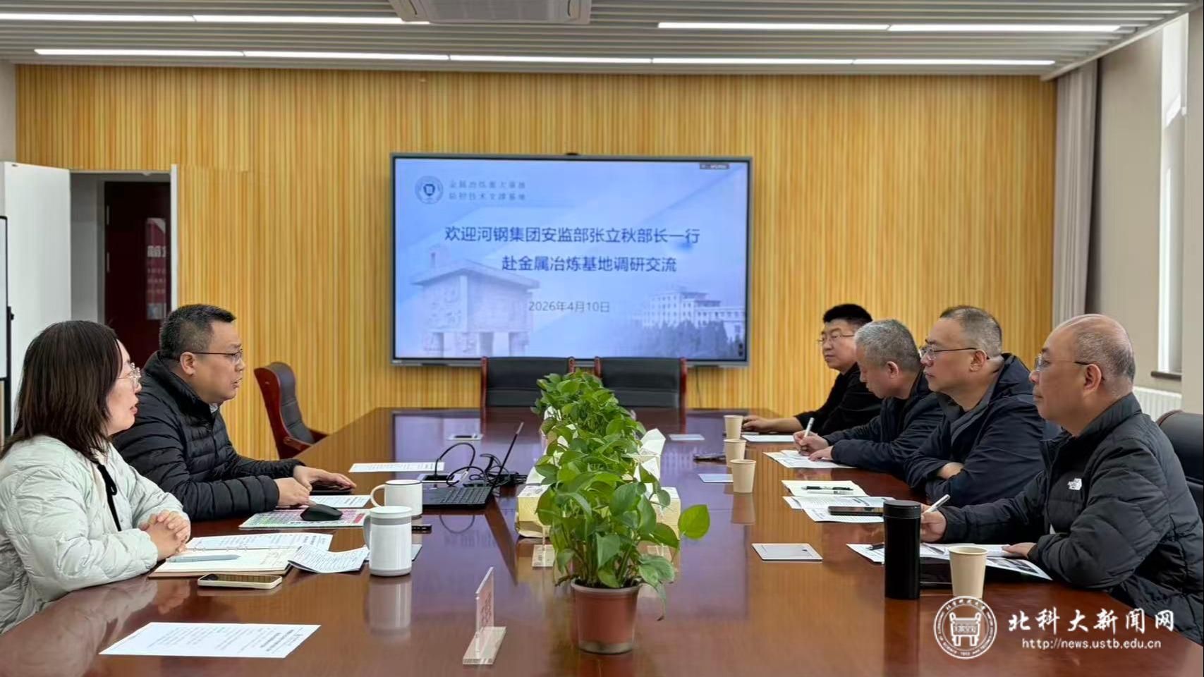 北科大新闻网4月13日电(通讯员 辛同泽)4月10日,河钢集团安全生产监督部副部长张立秋一行到金属冶炼重大事故防控支撑基地(以下简称“金属冶炼基地”)调研交流。金属冶炼基地副主任阳建宏、安璐等参加会议,会议由安璐主持。