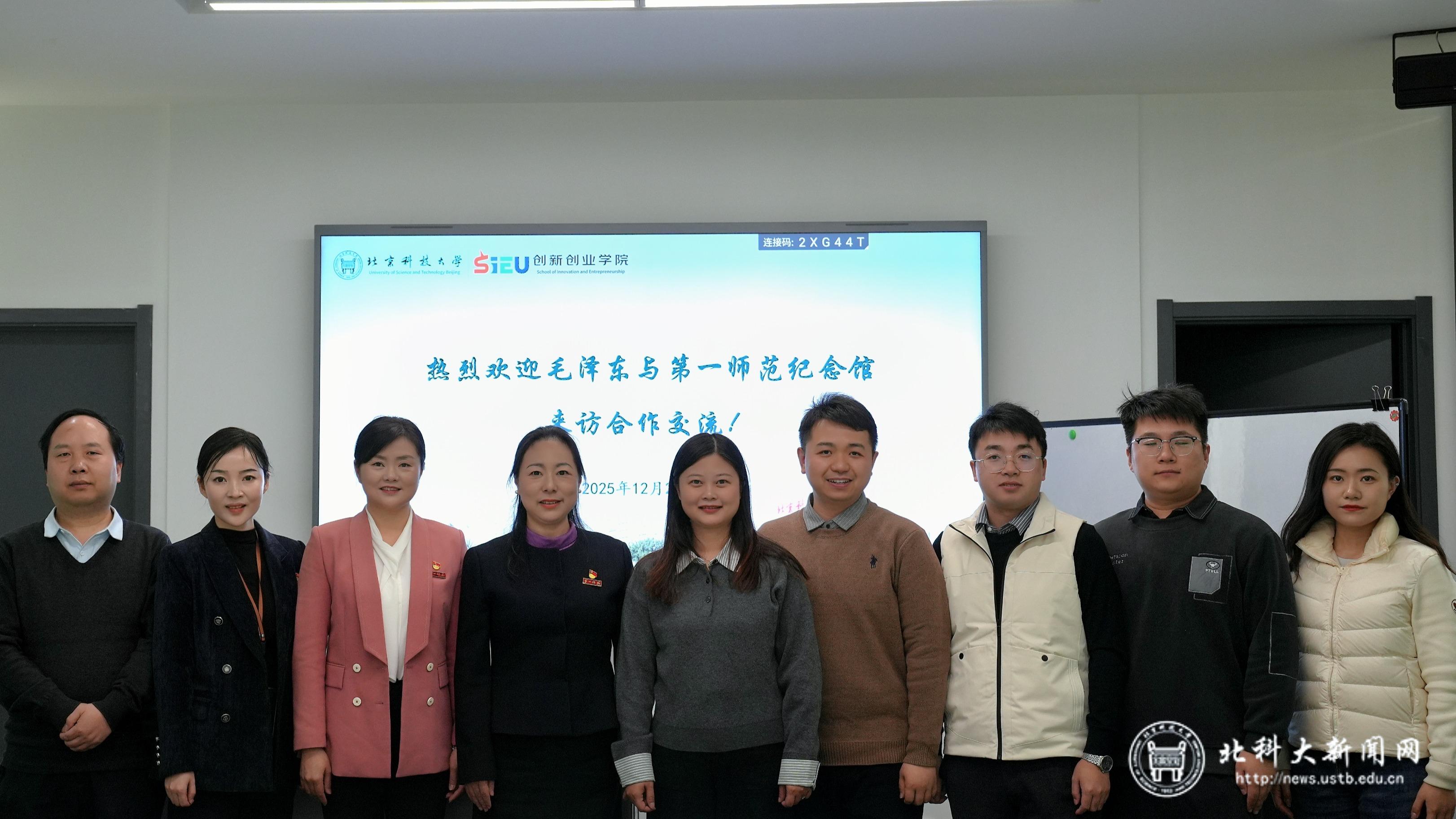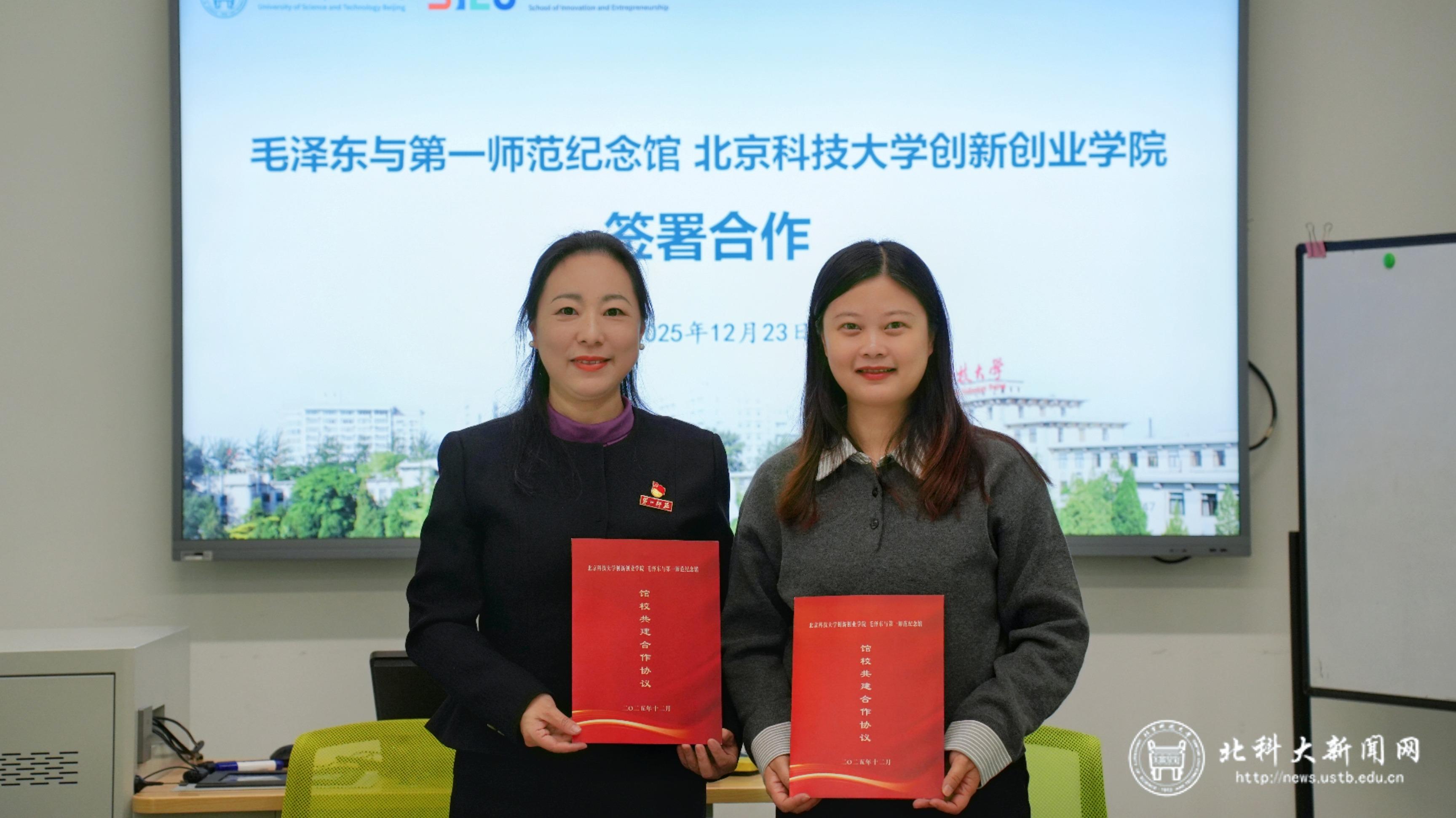 会后,杨丹一行参观贝壳创空间、重要回信展室,深入了解学校立德树人、服务国家战略的育人成果,并就红色资源进校园、实践育人品牌共建等话题继续深入交流。毛泽东与第一师范纪念馆、北京科技大学“思创融合”工作室相关负责同志参加签字仪式。