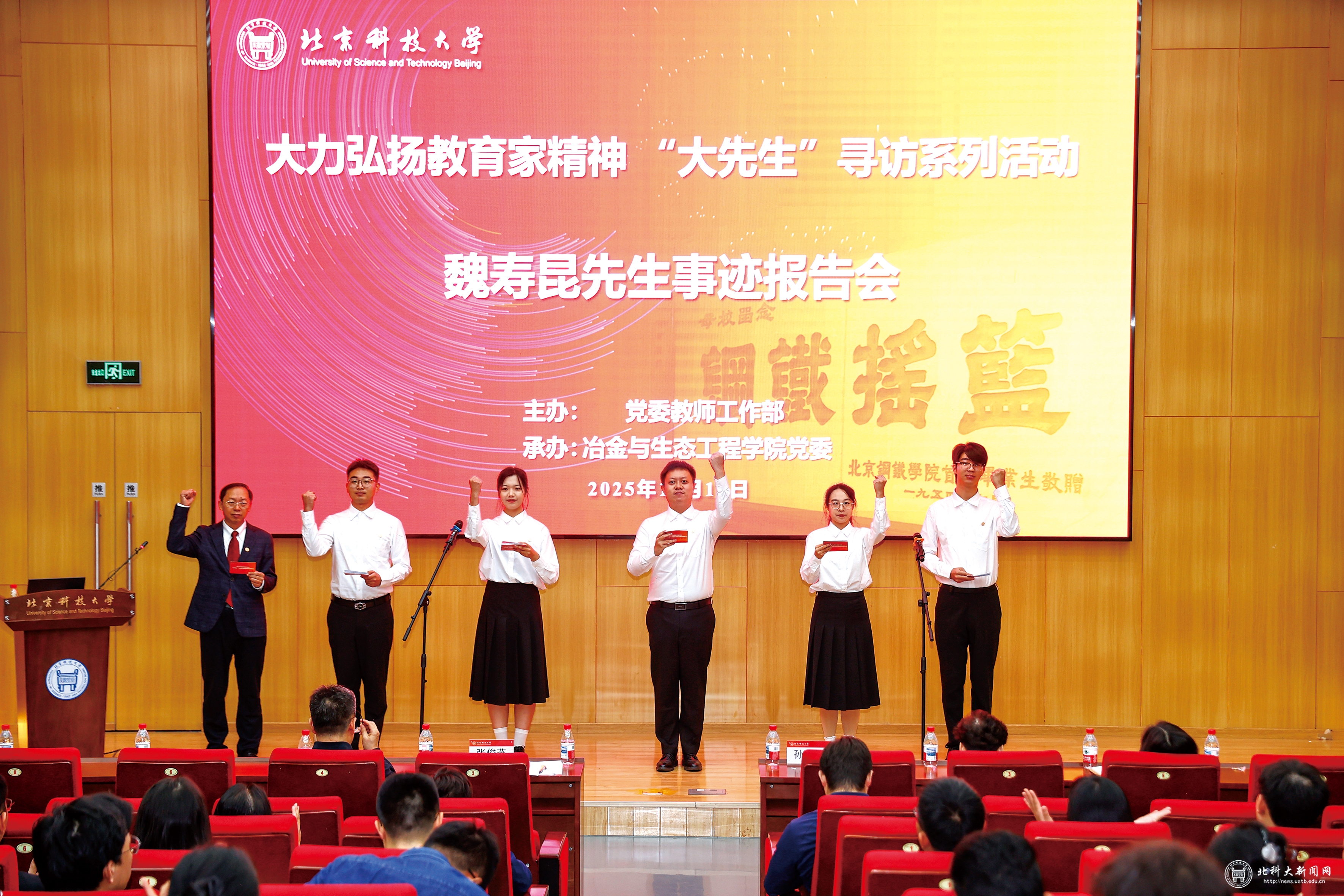 10月16日,由党委教师工作部主办、冶金与生态工程学院党委承办的“大力弘扬教育家精神‘大先生’寻访系列活动”首场报告会暨魏寿昆先生事迹报告会在学术报告厅举办。学校党委副书记孙景宏出席活动。