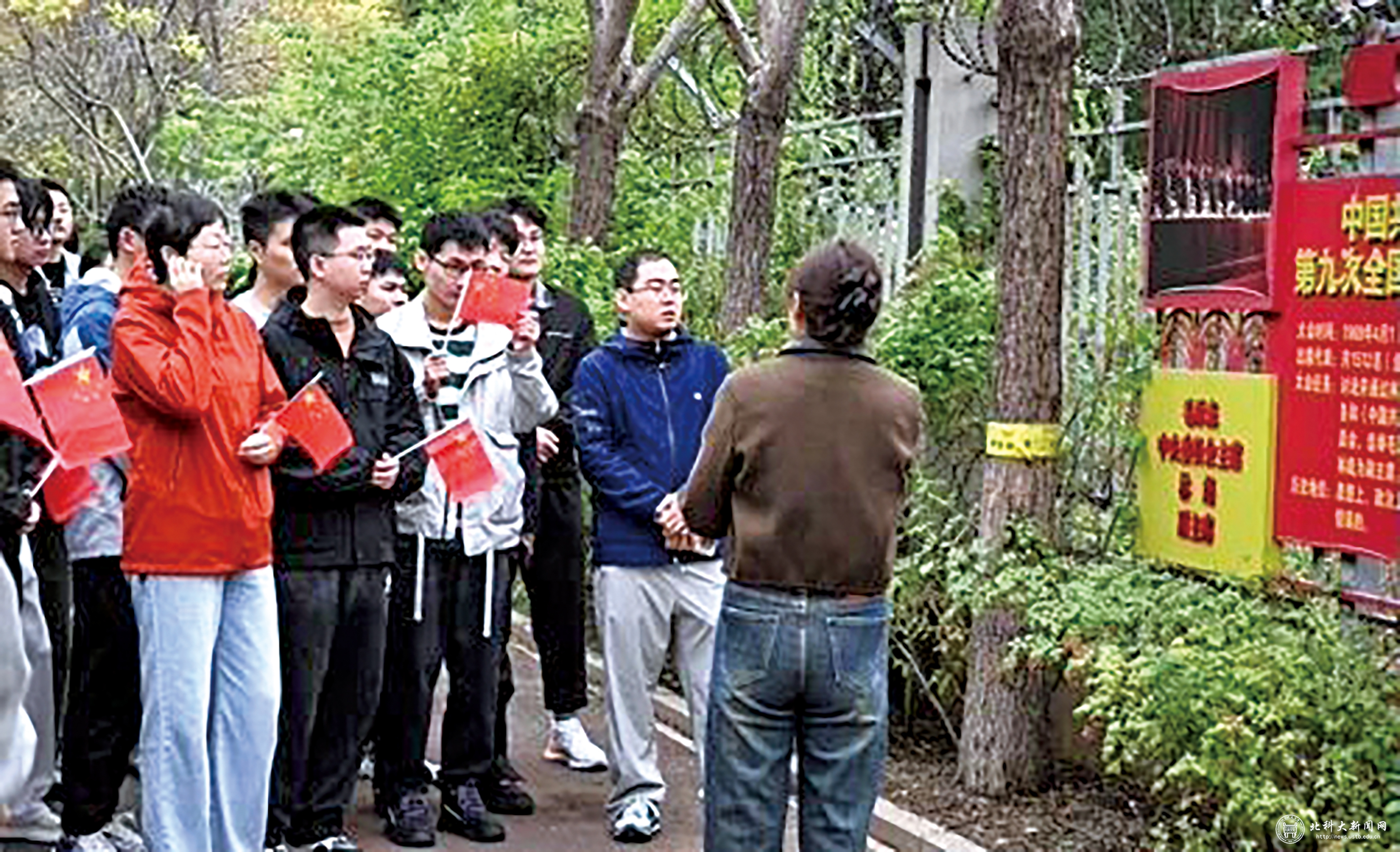 在马克思主义学院宣讲团成员胡若凡的带领下,大家沿着“党史路”健步前行,从“建党初期的艰辛探索”讲到“新时代的辉煌成就”,每一个党史故事都鲜活生动——有人认真聆听、不时点头,有人拿出手机记录关键信息,还有同学轻声和身边伙伴交流感悟。红色记忆在行走中慢慢扎根,初心与使命也变得更加具体。
