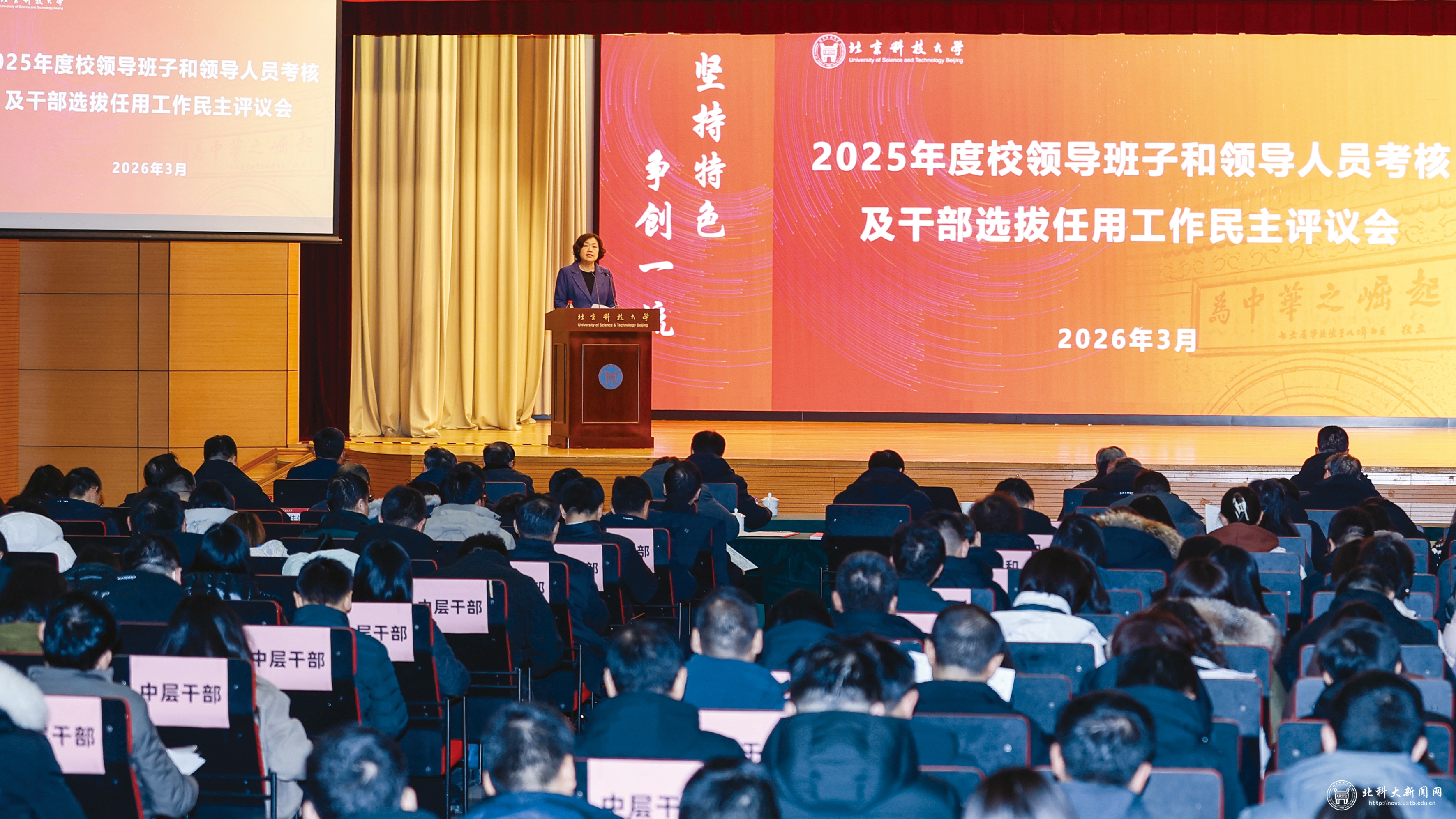3月5日,学校召开2025年度校领导班子和领导人员考核及干部选拔任用工作民主评议会。学校领导班子成员、中层干部及其他各方代表320余人参加了会议。