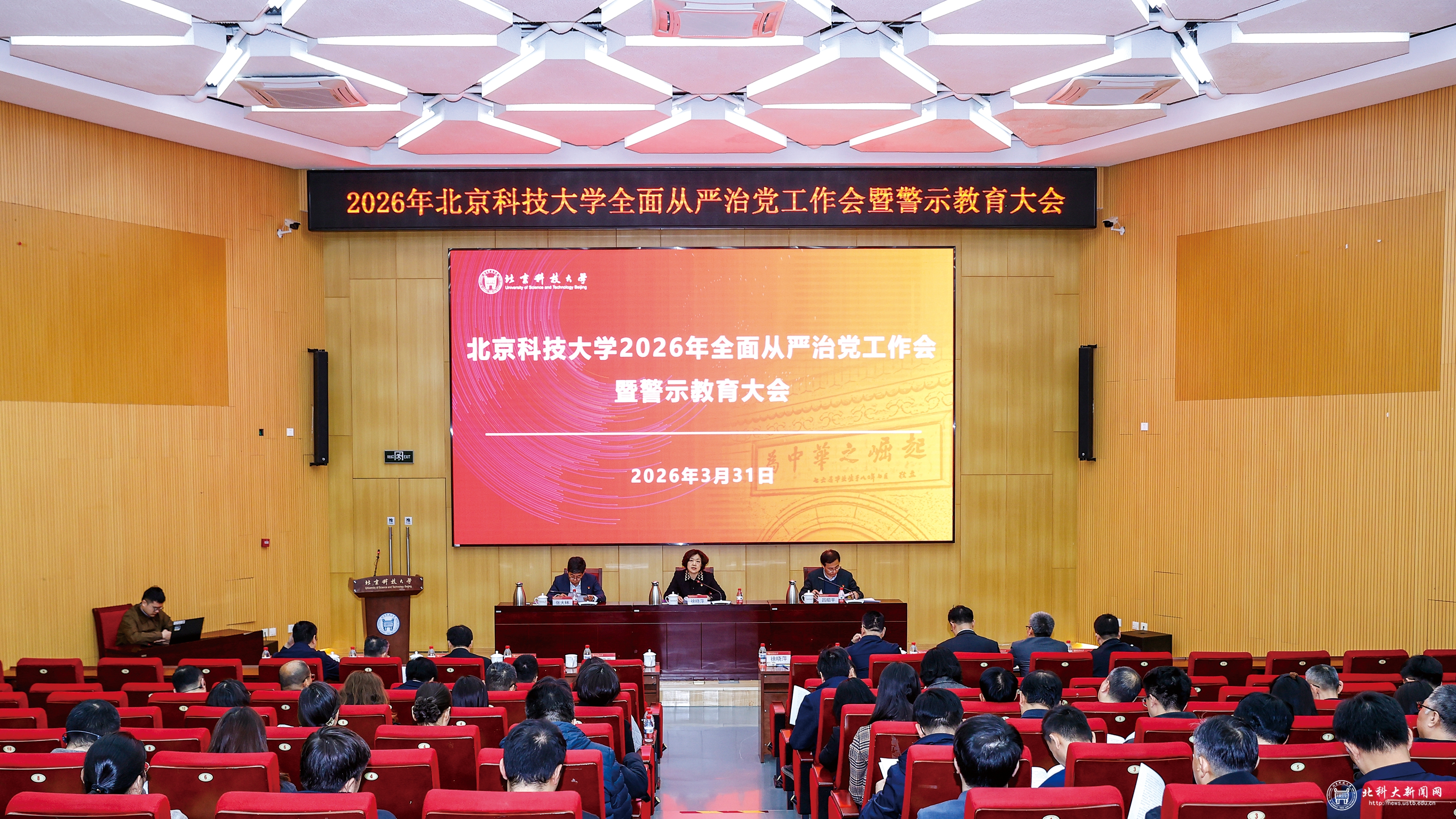 3月31日,学校召开2026年全面从严治党工作会暨警示教育大会。党委书记徐晓萍讲话并部署学校全面从严治党年度工作。党委副书记、校长吕昭平主持会议。党委副书记、纪委书记张大林作警示教育并部署2026年纪检监察工作。