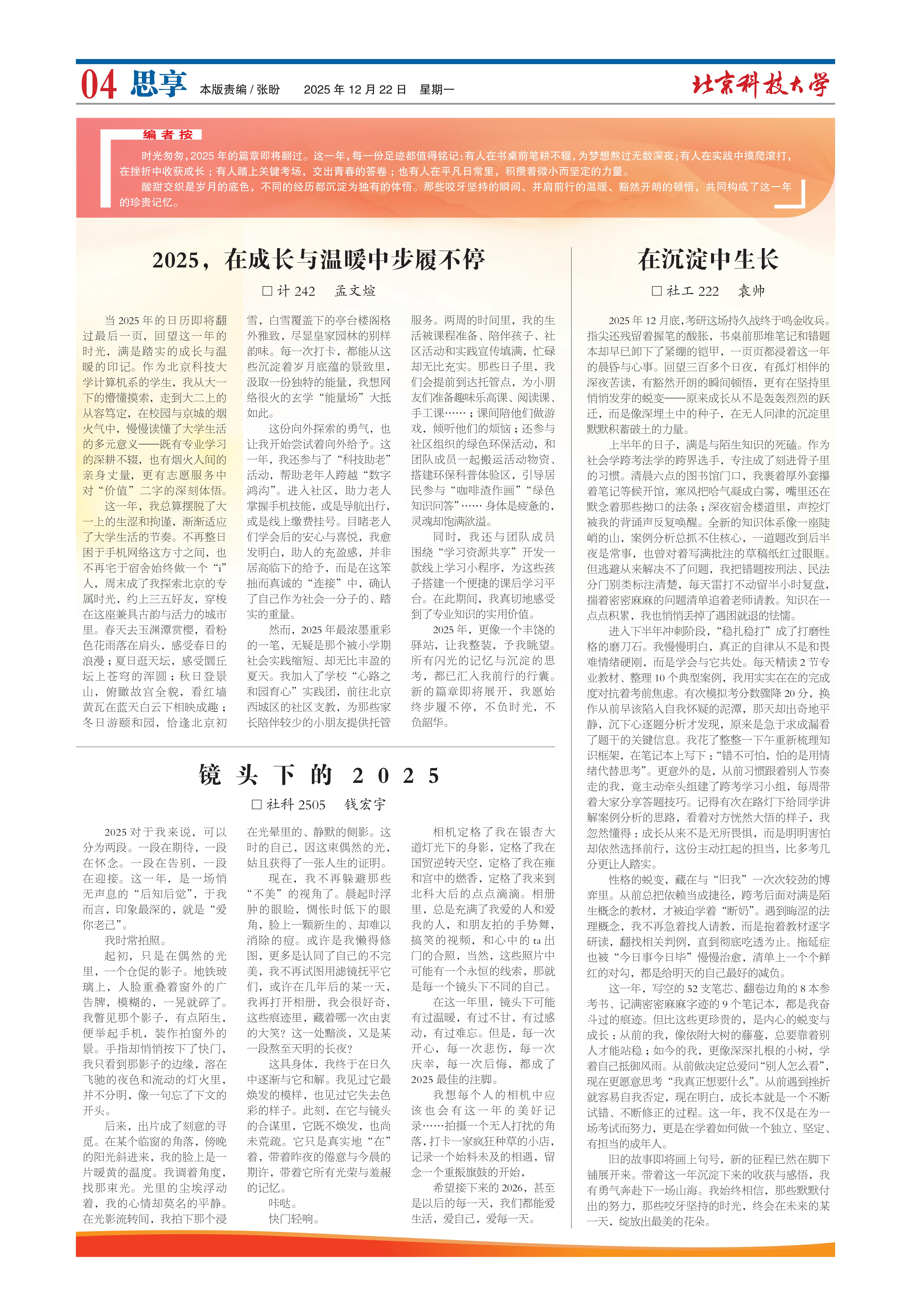 当2025年的日历即将翻过最后一页,回望这一年的时光,满是踏实的成长与温暖的印记。作为北京科技大学计算机系的学生,我从大一下的懵懂摸索,走到大二上的从容笃定,在校园与京城的烟火气中,慢慢读懂了大学生活... -