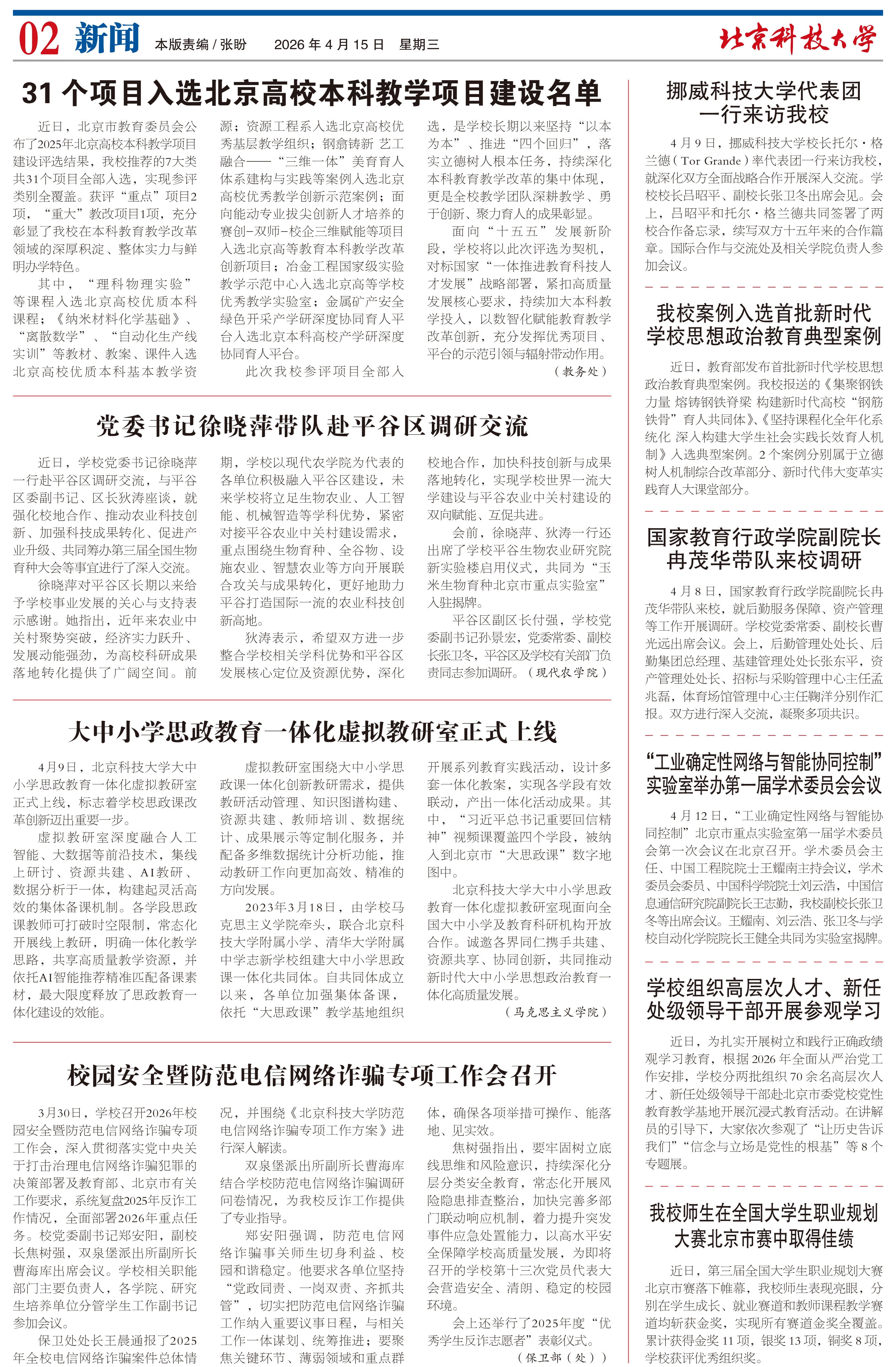 3月30日,学校召开2026年校园安全暨防范电信网络诈骗专项工作会,深入贯彻落实党中央关于打击治理电信网络诈骗犯罪的决策部署及教育部、北京市有关工作要求,系统复盘2025年反诈工作情况,全面部署2026年重点任务... -